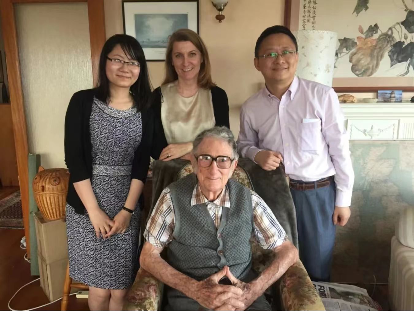 哈桑教授去世后,韩礼德先生身体也大不如前。因抵抗力下降,他生命最后几年一直受带状疱疹的困扰。2016 年初,我到 Macquarie 大学参加纪念哈桑教授的研讨会期间,曾和同事 Wendy Bowcher 教授到他家里拜访,先生身体已经比较虚弱,行动缓慢,但精神尚好。