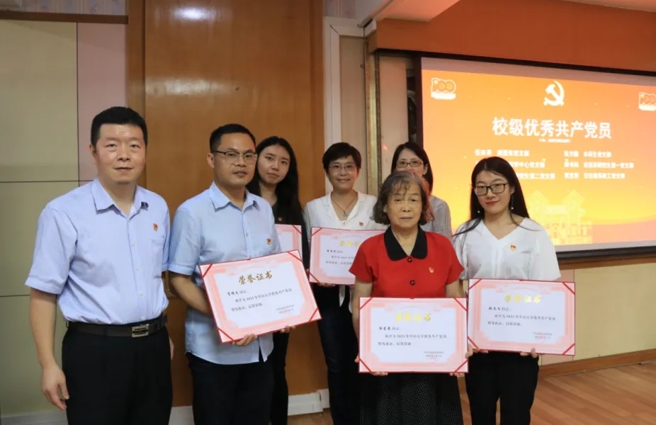 资料图片:2021年7月,伍杏英老师(前排右二)获“麻豆porn 优秀共产党员”称号