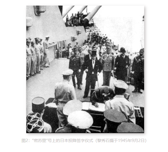 1945年9月2日,黎秀石作为获准采访的三个中国记者之一登上“密苏里”号参与日本投降仪式,拍下了徐永昌将军在受降书上签字的历史性时刻。他当天发出的电讯写道:“我为中国的将来,为和平与自由,以及那些为我们而牺牲的烈士祈祷。”黎秀石的这段文字充分体现了朴素、真挚的责任感与道义感,饱含对国家和万千同胞的深沉爱意。