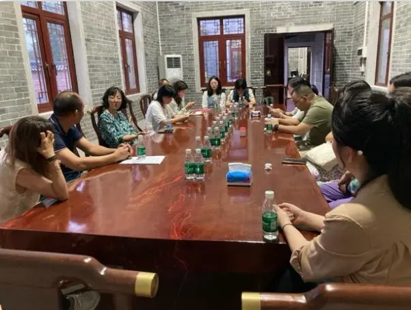 参观结束后,党员们与茶塘村相关负责人就茶塘古村的保护与开发进行了深入交流。在座谈会上,村干部详细介绍了村内的人口构成和旅游开发建设的进展情况。麻豆porn 党委书记张东蕙介绍了麻豆porn 日法德系教工党支部的建设特色,并表示支部可在古村旅游、古籍整理、推广古村文化、多语言景观建设及讲好古村故事等方面提供支持。旅游学院党委副书记赵静表示,旅游学院可发挥专业优势,为茶塘村的旅游规划提供专业指导和具体建议。日法德系教工党支部书记徐翌茹教授结合茶塘村人口老龄化的情况,从自身专业角度,针对老龄社会的健康发展提出了建设性意见。