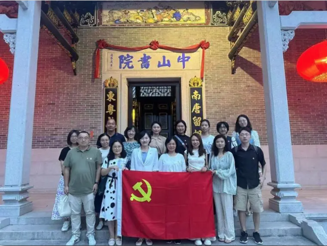 参观完塱头村后,党员们前往被评为“广州最美村庄”的茶塘村进行参观考察。在茶塘村党群服务中心,两个支部进行了座谈交流。旅游学院规划系教工党支部书记陈钢华教授和日法德系教工党支部书记徐翌茹教授分别介绍了各自支部建设情况,并表示在讲好中国乡村故事等方面,双方将加强深度交流,探索更广泛的合作领域及更有效的合作机制。