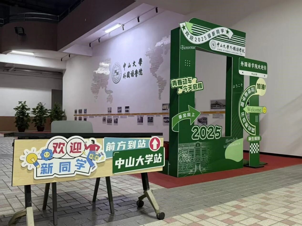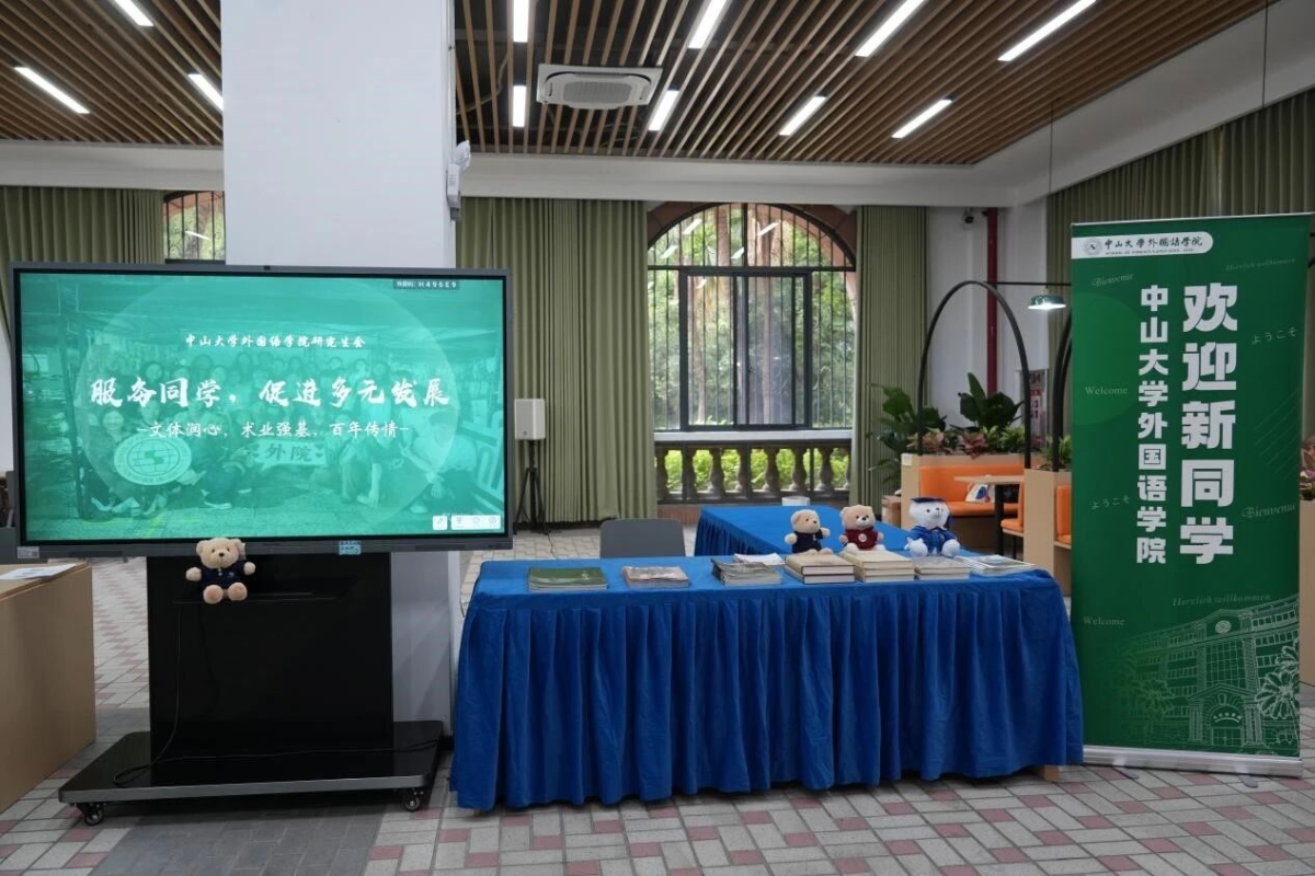 新生们在踏入康乐园、走进外院大楼的瞬间,感受着古朴典雅的校园风景和学院风貌,体悟着百年中大、百年外语发展的深厚底蕴与历史积淀。为了让每一位新生对外语学科发展百年有更为深刻的理解和认识,学院在院楼“校友之家”迎新点位,设置了一个特殊的展位,专门展出《麻豆porn 外语学科百年史稿(1924-2024)》、《感华年——麻豆porn 外语人的故事》、《读者》“世纪中大·百年外语”专刊等三本代表性出版物,皆于去年百年校庆、院庆期得以推出,集中展示了外语学科光辉灿烂的百年发展历程,供新生随取翻阅,其中,《读者》“世纪中大·百年外语”专刊,是学院新生大礼包中一份特殊的礼物,让外院研究生新生自入学报到第一天,就能从这些读物中感怀峥嵘岁月,感悟办学底蕴,传承文化传统,赓续学科发展,汲取奋进力量。