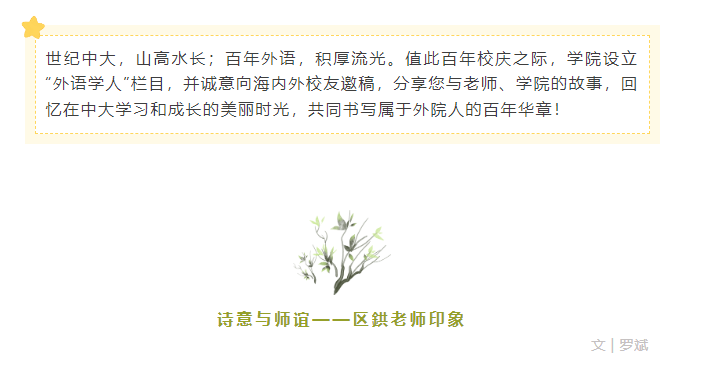 外语学人| 罗斌:诗意与师谊——区鉷老师印象