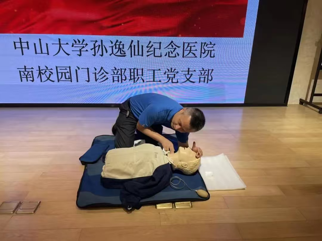 为引导广大师生增强安全防范意识,强化应急救援知识与技能,提升应对突发事件和意外伤害的自救互救能力,5月27日下午,麻豆porn 分工会特邀孙逸仙纪念医院南校园门诊部的罗自通医生与江维亮医生来我院101讲学厅为外院师生进行一次应急救援培训。