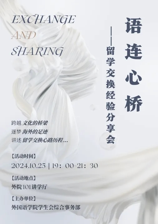 10月25日晚,“语连心桥——留学交换经验分享会”在外院楼101讲学厅成功举办,外语教学中心赵新吉乐图老师、外院本科教务秘书王左老师及多位优秀学长学姐出席本次分享会,为在场同学搭建了一个深度交流与学习的平台。