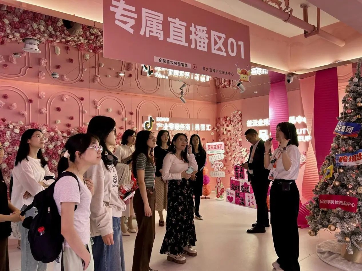 接着,师生党员们来到了广州高新技术产业开发区“一区五园”之一的广州民营科技园益云科创中心进行参观,师生们了解了丰富的产业孵化成果,触摸到科技型民企对复合型人才的需求。师生一行还走进1688美妆广州选品中心,直观感知了直播电商、国货美妆等新消费领域对外语专业人才的精准画像及市场需求。