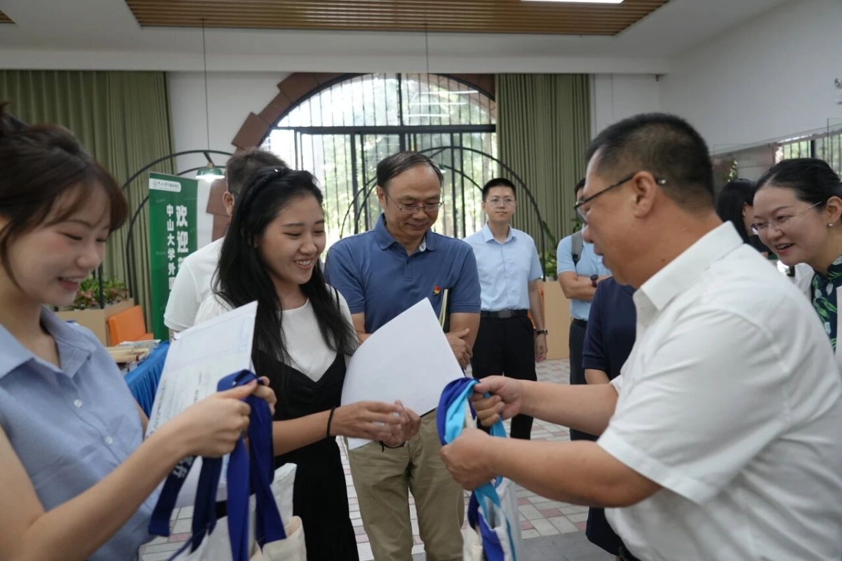 报到当天,领导老师们也在迎新现场与新生及家长们交流互动,了解学生情况,进行答疑解惑。同时,了解各服务点位工作进展情况,协调流程、慰问志愿者,确保每一项工作落实到位。他们以实际行动践行外院“以人为本”的育人理念,让新生从入学首日就深切感受到——这里不仅是汲取知识的学府,更是一个有温度、能包容的成长家园。