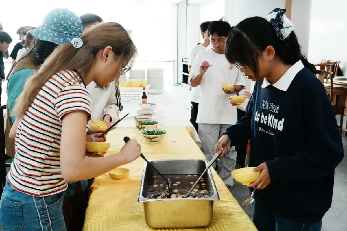 冬至这天,除了吃饺子庆团圆,南方也常常以汤圆寄托圆满之意,于是,活动现场还同步准备了甜甜的汤圆。同学们端着温热的碗,小口品尝,软糯的外皮在齿间轻轻化开,甜而不腻的内馅缓缓流淌,暖意顺着喉咙一路蔓延到心底,也让来自五湖四海的师生们在校园里收获了由口入心的温情。