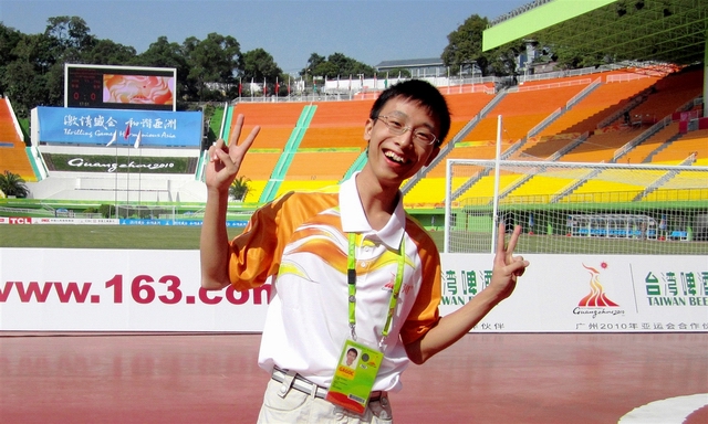 Wang Weibiao, annonceur en langue française des épreuves de football lors les Jeux Asiatiques de Canton 2010