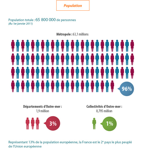 Au 1er janvier 2011, la population française franchit pour la première fois 65 millions d'habitants en France métropolitaine et dans les départements d'outre-mer.