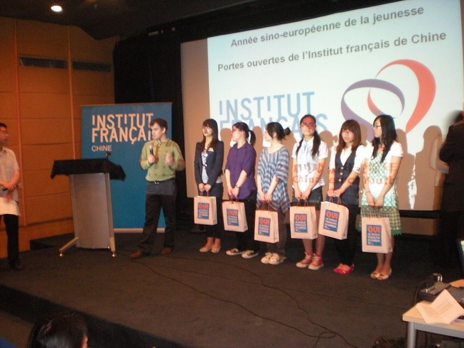 Le 17 mai 2011, la cérémonie de remise de prix du Concours de Blog 2010-2011 a eu lieu à l’Institut français de Chine à Pékin. En tant que lauréate sélectionnée parmi les 10 finalistes du concours, Bai Peiru, étudiante de notre Département de Français, a été invitée à Pékin pour participer à la cérémonie de remise des prix, en rapport avec les festivités organisées à l’occasion de l’année sino-européenne de la jeunesse.
