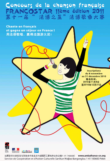 Le Concours de la Chanson Française est organisé chaque année par le Service de Coopération et d’Action Culturelle (SCAC) de l’Ambassade de la France en Chine et le Centre Culturel Français (CCF). Près de 150 universités chinoises y participent. Ce concours s’adresse aux étudiants âgés de 18 à 25 ans, de nationalité chinoise, apprenants de la langue française.